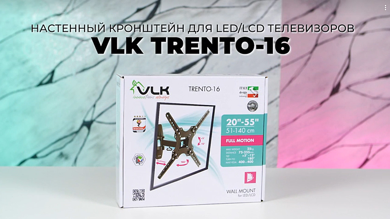 VLK TRENTO-16 BLACK надёжно удержит экран размером 20"-55" дюйма и весом 25 кг. Простая конструкция VLK TRENTO-16 BLACK идеально подойдет для самостоятельного монтажа. Наклонно-поворотная регулировка позволит наклонять вверх и вниз на +5 -20°, поворачивать влево и вправо на 180°, и выдвигать на 70-270 мм. Кронштейн подходит для большинства телевизоров популярных брендов, таких как Samsung, LG, Sony, Panasonic, Sharp, Toshiba, KIVI, Xiaomi Mi, SUPRA, Hyundai, Erisson, Horizont, JVC, Thomson, HAIER, BBK, Витязь, Веко, BQ, OZON, SkyLine, Pioneer, Philips, Rolsen, Harper, Hisense, Hitachi, Polarline, Prestigio и других. Крепёжные отверстия VLK TRENTO-16 BLACK изготовлены по стандарту VESA. В комплектацию VLK TRENTO-16 BLACK входят необходимые для монтажа материалы. Вся продукция обеспечивается гарантийными обязательствами. 18 лет гарантии на все сварные и механические соединения позволит наслаждаться конструкцией долгий срок. Во время эксплуатации VLK TRENTO-16 BLACK демонстрирует поразительную износостойкость и безотказность. Подробнее https://www.kromax.ru/produce/pan_tilt/6126/