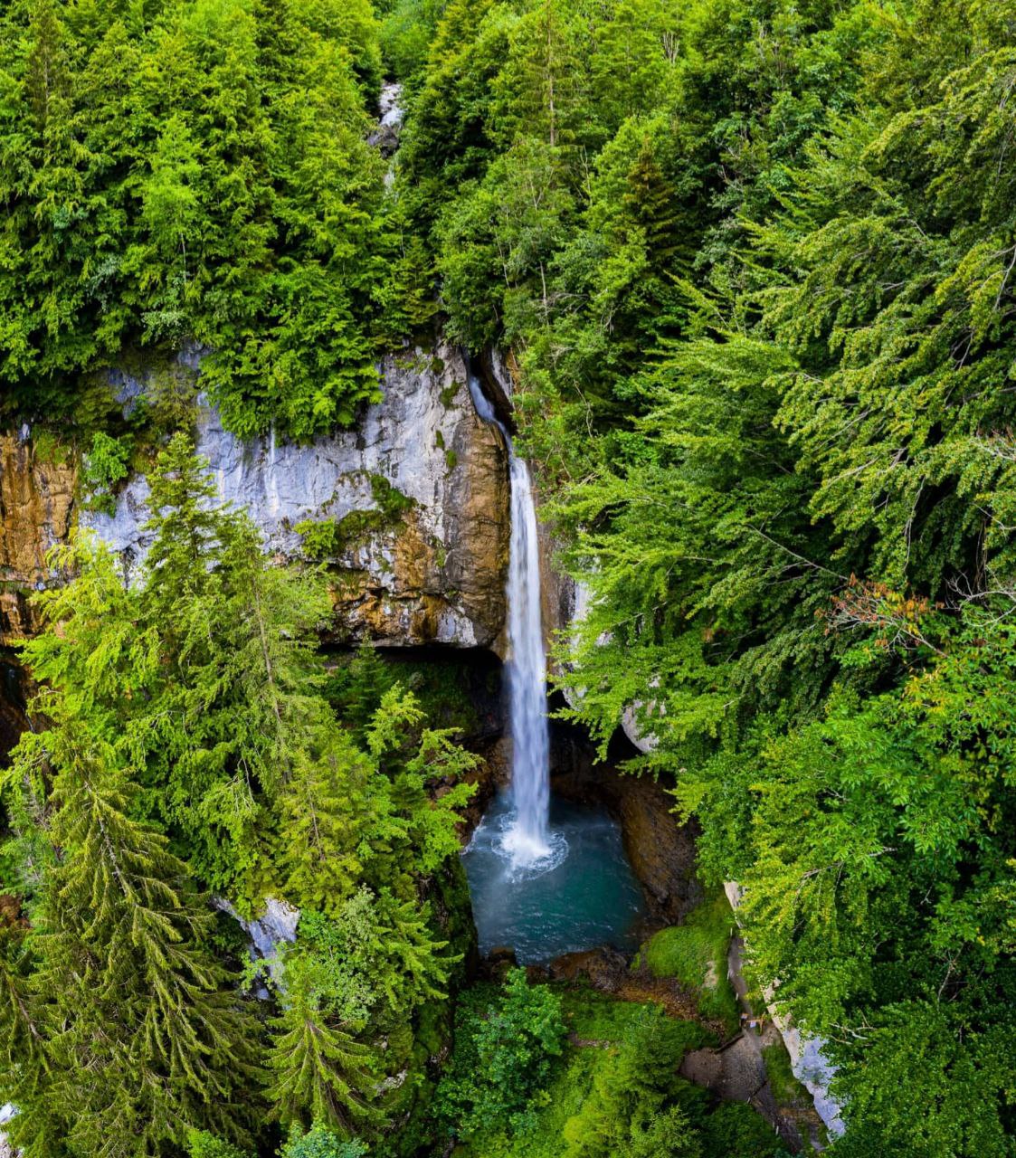 Швейцария ??, водопад Берглиштюбер Швейцария – страна не только живописных гор и тысячи озер, но и великолепных водопадов. Водопад Берглиштюбер (Berglistüber) – кантон Гларус. Этот водопад считают самым красивым в Швейцарии, находится неподалеку от перевала Клауссенпасс, около деревни Линталь. Поток воды течет не по скале, а находится в свободном падении, благодаря чему пешеходная тропа проложена за водопадом. Она прорублена в известняковой породе, возраст которой – 150 миллионов лет. Рядом с водопадом находятся деревня Линталь и высокогорный перевал в Швейцарских Альпах под названием Клаусен (Klausenpass), который соединяет кантоны Гларус и Ури.