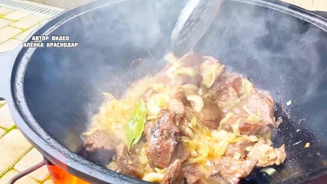 Перловка по КУБАНСКИ Говядина с перловкой и квашеной капустой в казане