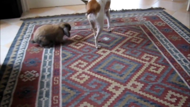 Кролик нападает на собаку. Смешной кролик и пёс