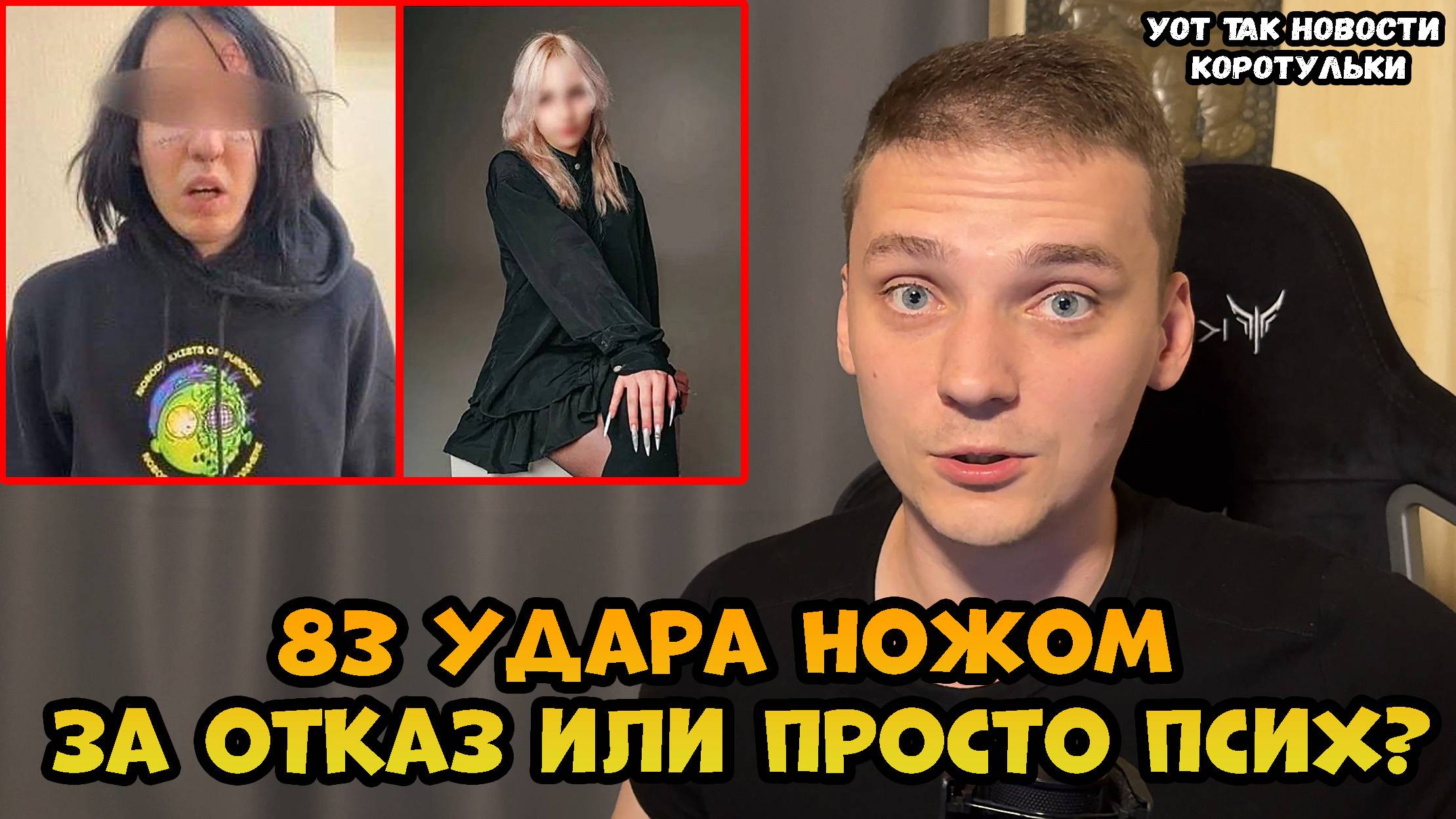 Поддержка автора► 2202 2063 9587 6621 Сбербанк https://www.donationalerts.com/r/pasha_king Телеграмм►https://t.me/pasha_klng Плейлист со всеми коротульками► https://clck.ru/397uJf Плейлист со всеми полными УОТ ТАК ВОТ новостями► https://clck.ru/397uNA Канал на Дзене ►https://dzen.ru/id/5d4d089844742600ad04cd0e Канал с летсплеями и записями стримов ► https://dzen.ru/id/6501aa9dffb3f010e7d595cf Игровой Youtube канал►https://www.youtube.com/channel/UCwl8BkEZuKH4invGpj3QJzw/ В Самаре неадекват с пентаграммой на лбу убил школьницу, ударив её ножом 83 раза. 19-летний житель Тольятти приехал в гости к своему брату. Там же находилась 17-летняя Анастасия, на которую неадекват посреди ночи накинулся и зарезал. По словам убийцы, он находился в состоянии аффекта. — Сколько ножевых ранений ты ей нанёс? — Мне сказали 83. Я убил её в квартире брата, убил ножом, я был под состоянием аффекта. Вину признаю и раскаиваюсь, не хотел этого делать, не знаю, как это всё получилось.