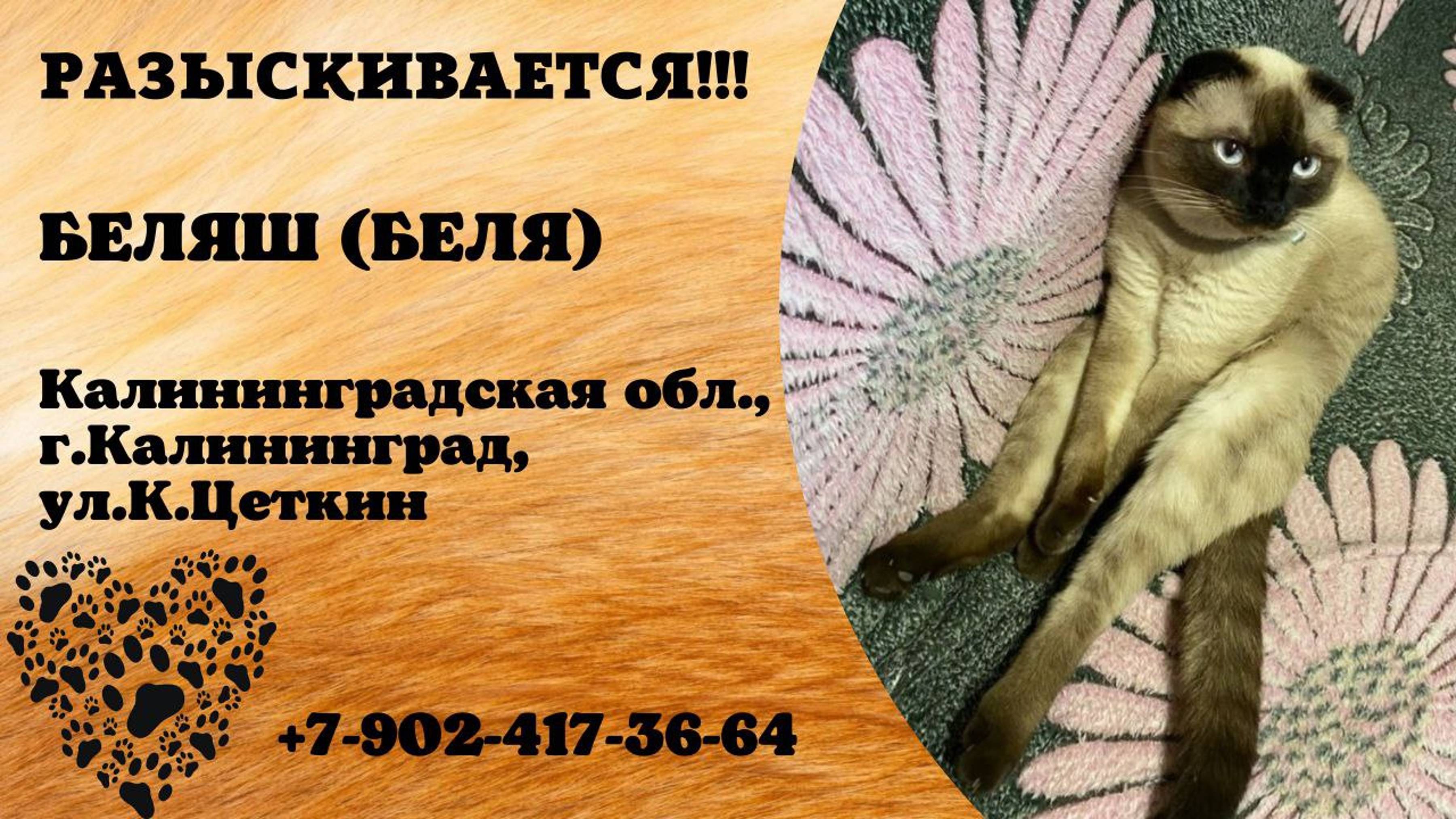 Пропал кот! БЕЛЯШ ( БЕЛЯ). Калининградская обл, г. Калининград