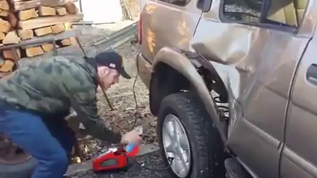 Мужчина поджёг колесо автомобиля и чуть не обжегся. #фейл #неудача #авто