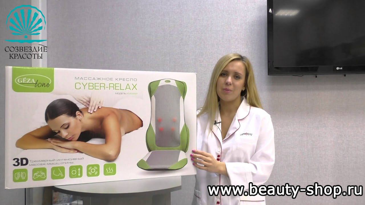 Массажная накидка обеспечивает трехмерный роликовый массаж, полноценно прорабатывает мышцы, снимает спазм и напряжение, улучшает самочувствие и успешно заменяет походы в дорогие массажные салоны. http://www.beauty-shop.ru/catalog/massazhnoe-kreslo-cyber-relax-gezatone-amg399-1301142.html