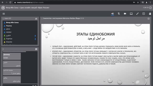 Аятолла Месбах преподавал и проводил исследования в области философии, теологии, этики и гуманитарных наук, создав собственную философскую систему. Также частью его исследовательской деятельности были изучение и критика некоторых учений западной философии, таких как марксизм и позитивизм. Он был одним из тех, кто сыграл значительную роль в развитии исламского образования, основав несколько институтов гуманитарных исследований с исламским подходом, наиболее значительным из которых является Образовательный и исследовательский институт имама Хомейни. Лектор: доктор Фанаи Эшкевари получил степень магистра сравнительной философии в Институте исламских исследований, а также степень доктора философии религии. Обучался в университете Макгилла (McGill University) в Канаде. Доктор Эшкевари является автором 50 научных статей по философии, опубликованных в том числе в международных изданиях.