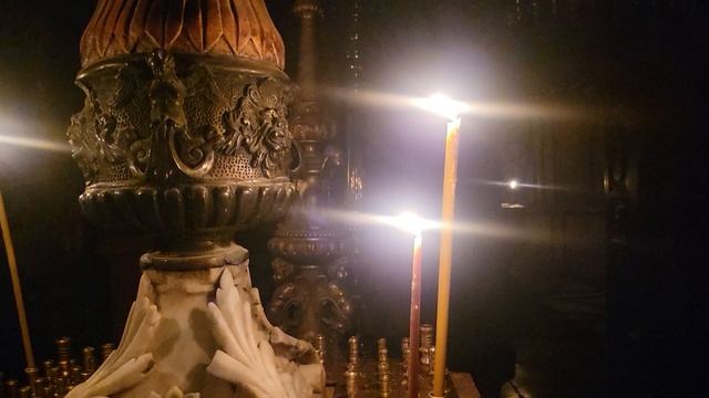 Неожиданно погас весь свет в Храме Гроба Господня. Поздним вечером - только свечи и лампадки