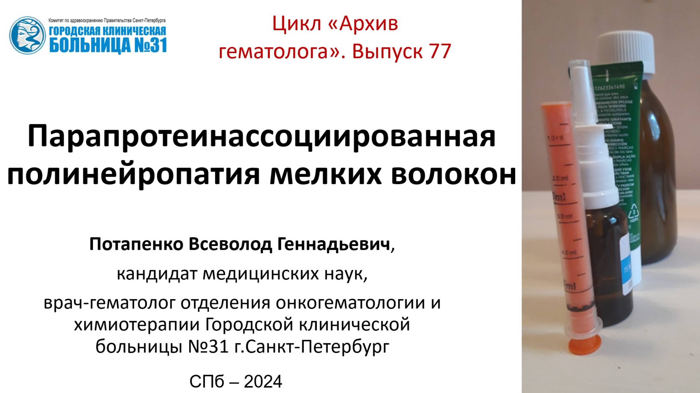 Архив гематолога 77. Полинейропатия мелких волокон ассоциированная с парапротеинемией