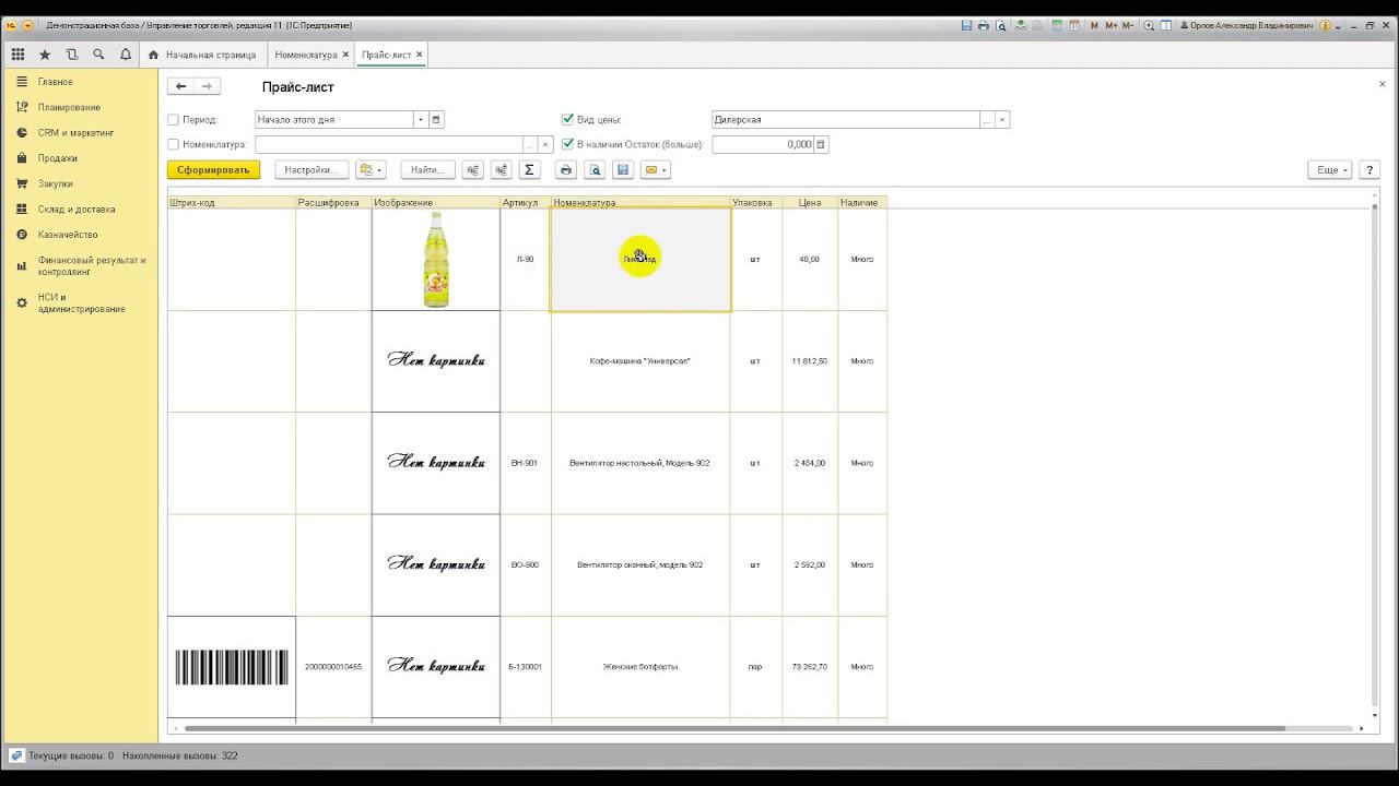 Внешняя обработка по формирониваю прайс-листа в 1С. Выводятся такие данные: штрихкод товара (цифровой вид), штрихкод товара (числовой вид), изображение номенклатуры, артикул, наименование номенклатуры, упаковка (единица измерения, описание), цена и представление остатка (наличия товара). На форме обработки возможно можно указывать: - период, на который выводятся остатки и цена; - номенклатура, по которой формируется прайс; - вид цены, по которой выводится цена; - остаток (больше) - контроль по количеству остатка. Для возможности приобретения обращайтесь по контактам указанным на странице http://1cka.info/kontakti.html