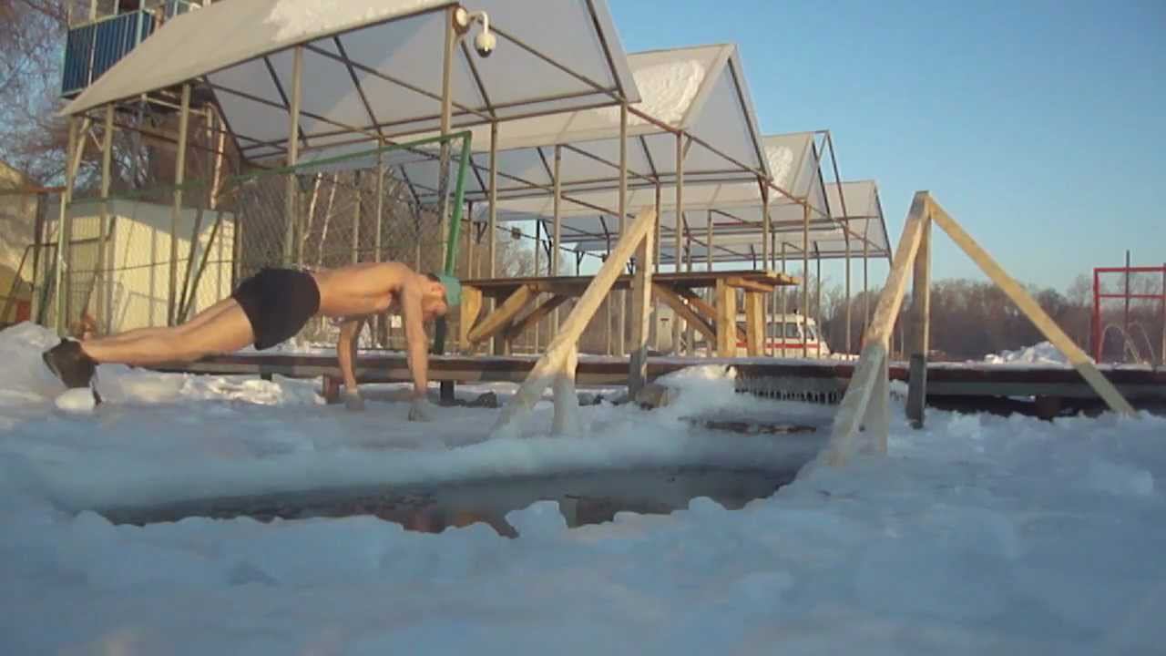 Моржевание. Мороз -18 С. Солнечное тихое морозное утро