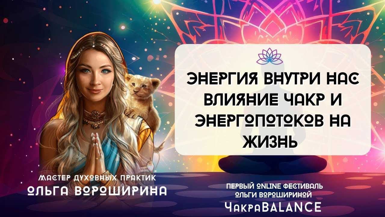 В прямом эфире разобрали вопросы о работе с энергиями, чакрами и как они на нас влияют, как научится себя работать с энергиями и помогать самому себе. А также рассказала про Фестиваль, который стартует 10 июня, что даст вам и чем будет полезен. В конце практика "Чакровые бусы" для всех! Не пропустите! Подробности Первый online фестиваль Ольги Ворошириной ЧакраBALANCE! С 10 июня, 21 день! ⭐⭐⭐⭐⭐⭐⭐⭐⭐ Проработка всех 7 чакр, глубинная трансформация, тайные техники и простые практики! Эффект не заставит себя долго ждать! В ПРОГРАММЕ ФЕСТИВАЛЯ: Самодиагностика чакр по методу Ольги Ворошириной; Авторский комплекс личных духовных практик Ольги Ворошириной; Физические упражнения, йога и мудры; Арт-практики и арт-терапия; Тайные мантры; Новые медитации; Новые знания от экспертов из разных областей по улучшению работы чакр и всех систем организма. Присоединяйтесь, будет очень интересно и полезно! Стоимость участия - 3008 руб. Оплата по ссылке: https://payform.ru/sn4bit5/. С уважением, Ольга Вороширина Канал с практиками https://t.me/olgavoroshirina