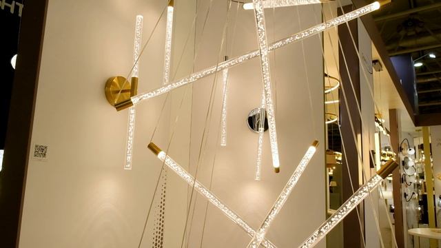 Линейка светильников в золоте выполнена в прозрачном акриле с эффектом очаровательных пузырьков создаст невероятное легкое невесомое пространство за счет тонкости плафонов, будет давать мягкий и комфортный свет. Подвесной светильник со светящимися плафонам словно мечами джедая создадут динамичное и эффектное пространство