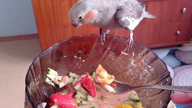 Чика ест из моей тарелки все!