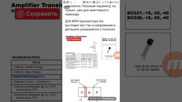 Транзистор 15. Max допустимое значение U между эмиттером и базой