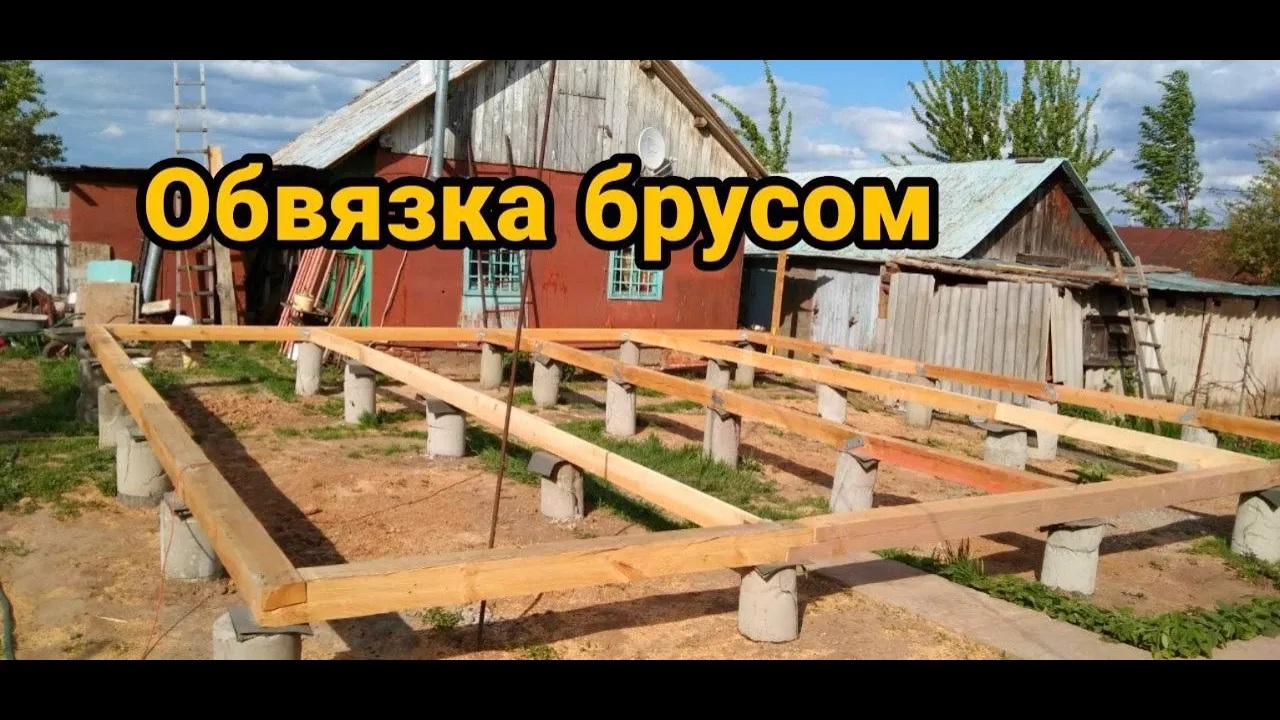 Обвязка столбчатого фундамента БРУСОМ. Каркасный дом своими руками ч2.