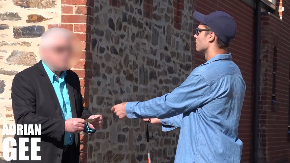 Парень прикинулся слепым.