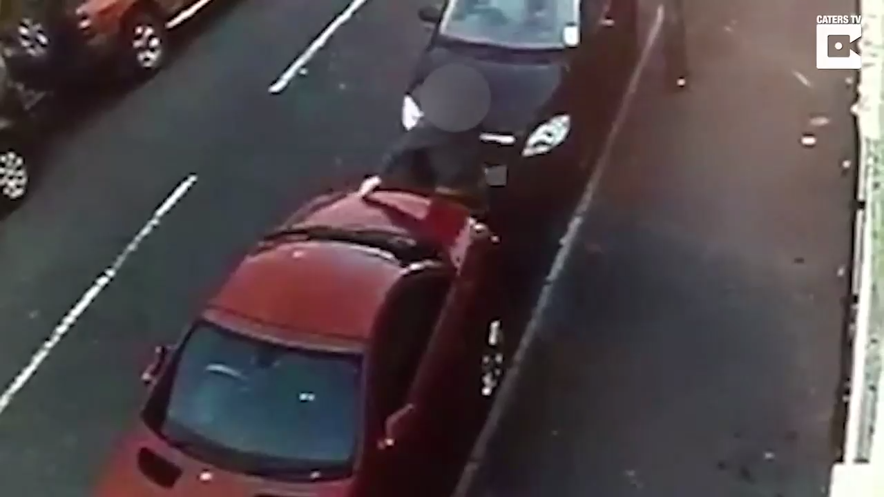 Камера зафиксировала на видео, как неадекватный парень царапает припаркованные автомобили. Всего пострадало 20 автомобилей. #царапина #автомобили #чудак