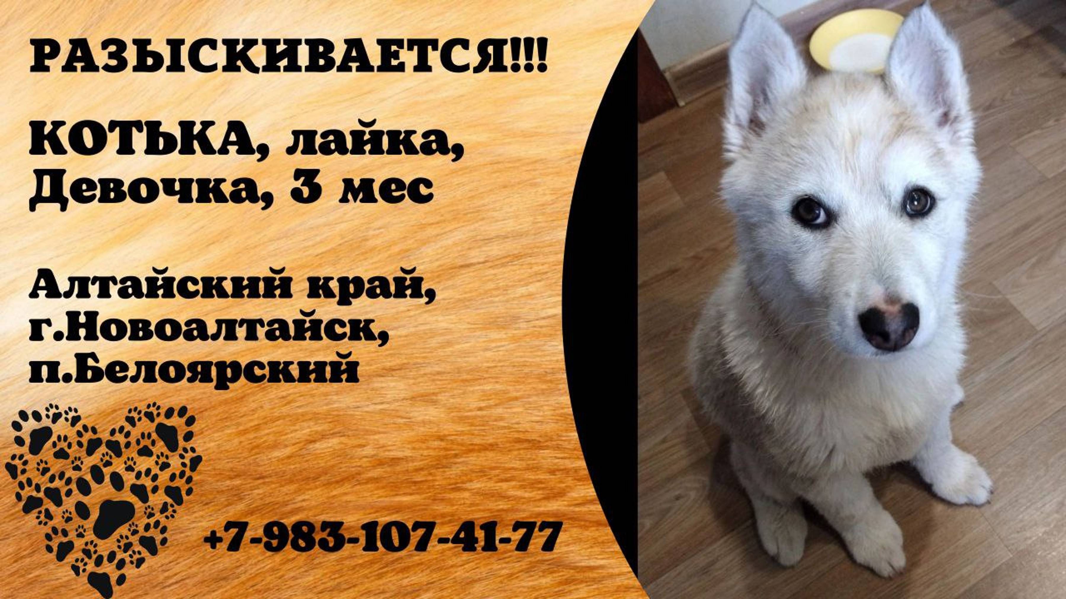 Алтайский Новоалтайск, п.Белоярский Пропала собака + Белый щенок лайка зовут Котька 3 мес Имя хозяина: Татьяна Телефон: 79831074177 Инфо https://vk.com/wall-198815410_192845 #пропала_собака#новоалтайск
