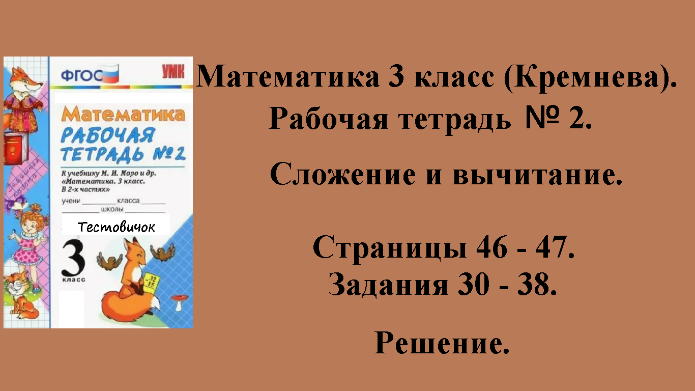 ГДЗ решение Математика 3 класс (Кремнева). Рабочая тетрадь № 2. Сложение и вычитание. Задания 30 - 38. Страницы 46 - 47.