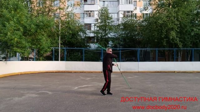 Разминка с трёхзвенным шестом Сань-цзе-гунь из пластиковой трубки (10)