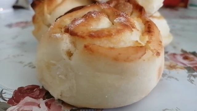 Булочки творожные, как розочки... Нужно дрожжевое тесто и творожная начинка с изюмом, или орехами... Можно ванилин добавить