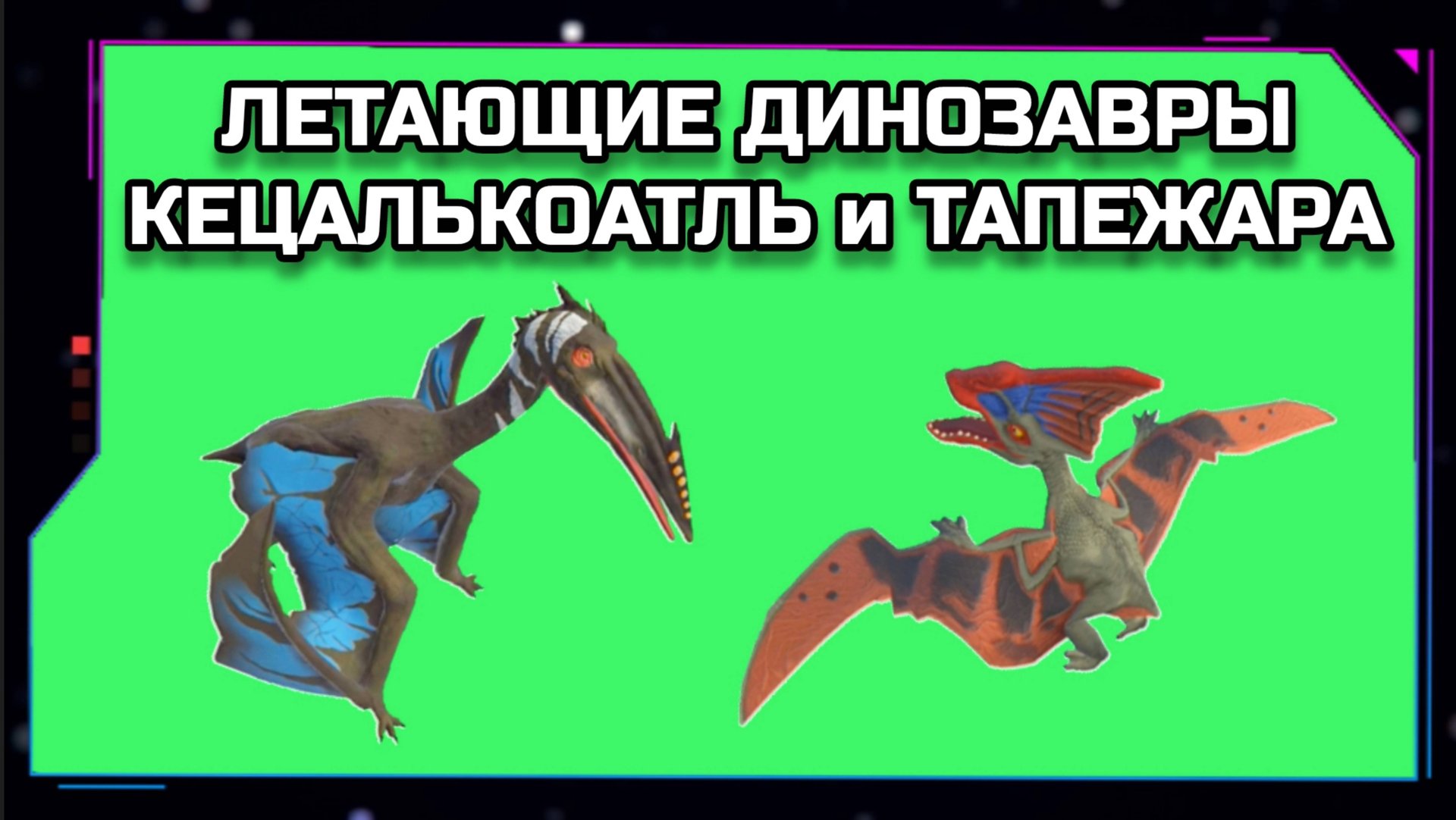 ЛЕТАЮЩИЕ ДИНОЗАВРЫ видео GREEN SCREEN футаж. ХРОМАКЕЙ АНИМАЦИЯ КЕЦАЛЬКОАТЛЬ и ТАПЕЖАРА на зелёном эк