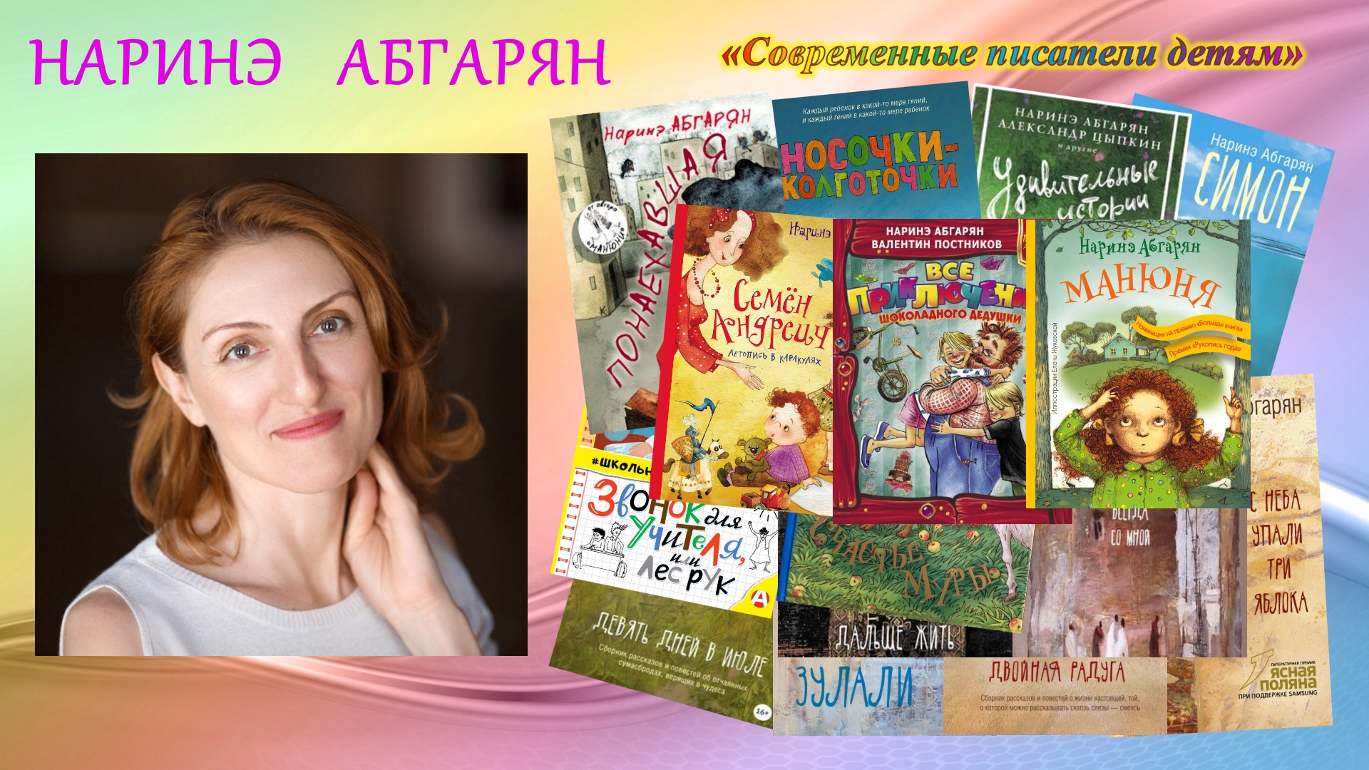 Центральная детская библиотека имени Н. Островского города Сочи представляет вашему вниманию видеознакомство из цикла онлайн-мероприятий «Современные писатели детям». Знакомьтесь, писатель Наринэ Абгарян! Абгарян Наринэ Юрьевна – русскоязычная писательница, автор трилогии про маленькую девочку «Манюню», нескольких романов и повестей, блогер в популярном «Живом журнале», член попечительского совета благотворительного фонда «Созидание». А также лауреат множества литературных премий. Авторы и исполнители: главный библиотекарь Лозинская Виктория Олеговна и библиотекарь электронного читального зала Чернышова Екатерина Олеговна. Все права на использованные материалы сохраняются за правообладателями. https://library-sochi.ru/ #Абгарян #НаринэАбгарян #детскаякнига #детскиекниги #писатели #Современныеписателидетям #читайтеиразвивайтесь #книжкаоткрывается_чудоначинается #Годкультурногонаследия #Народнаякультурадляшкольников #Народнаякультурадляшкольников_цбсСочи #Центральнаядетскаябиблиотека_цбсСочи #центральнаядетскаябиблиотека #Центральнаядетская_цбсСочи #библиотекивонлайнформате_цбсСочи #культурадляшкольников_цбсСочи #культурадляшкольников_цдбСочи #культурадляшкольников2022 #читаемсудовольствием #читаемсинтересом #времячитать_цбсСочи #читаемдетям #читаемдома #культураРФ #культураСочи #Культура_Кубани #цбсСочи #библиотекиРоссии #детскиебиблиотекиСочи #библиотекиСочи #Библиотеки_Кубани #читатьмодно #чтопочитать #книголюб #времячитать #читаем #сказки #стихи #книга #читайипомни #читатьсказки #мыслужимкниге #библиотекиСочивонлайнформате