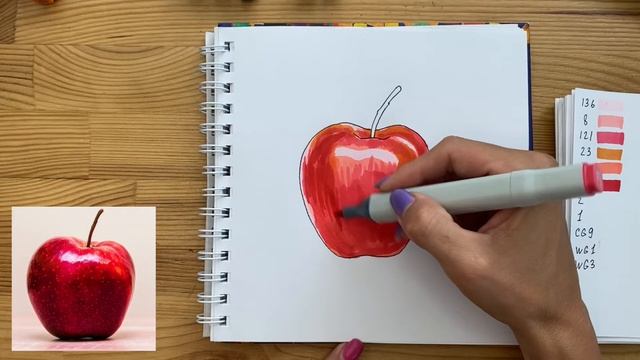 Как нарисовать яблоко поэтапно | Рисунок скетч маркерами для начинающих
