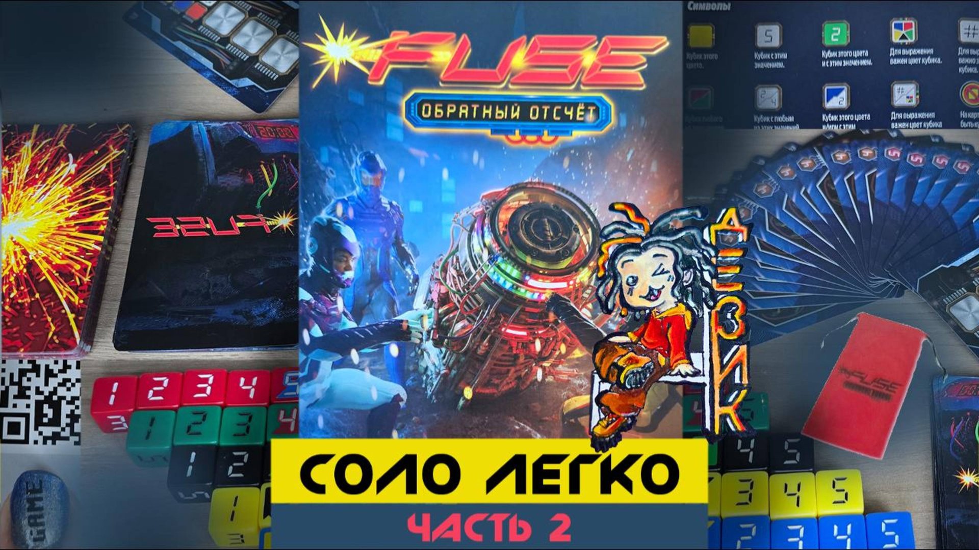 Понравилось видео? Репостни пожалуйста 🤝 Это очень поможет развитию канала и увеличит мотивацию FiBoPlay снимать больше и лучше 😊 FUSE — кооперативная настольная игра в реальном времени на 1-5 игроков, но BGG рекомендует играть в компании из четырёх человек. За десять минут игроки должны обезвредить все бомбы. От уровня сложности зависит количество таких бомб. Каждая бомба представлена картой, для обезвреживания которой нужна определённая комбинация игральных костей. Вам придётся решать ребусы, математические и логические примеры, строить стены башни и пирамиды при помощи кубиков. ОСТОРОЖНО! Они не должны РУХНУТЬ! Игрок достаёт из мешка столько игральных костей, сколько прописано в правилах, в зависимости от количества игроков. Затем игроки должны решить, кому какие кубики достанутся. Если кто-то не взял кубик - то случилось ЗАМЫКАНИЕ и игрокам становится сложнее достичь победы. Проблема в том, что нет времени обдумывать каждый вариант. У вас едва хватит времени, чтобы прикрикнуть на бабушку, которая тянется за так сильно нужным вам красным кубиком. Эта игра самоуничтожится через десять минут...