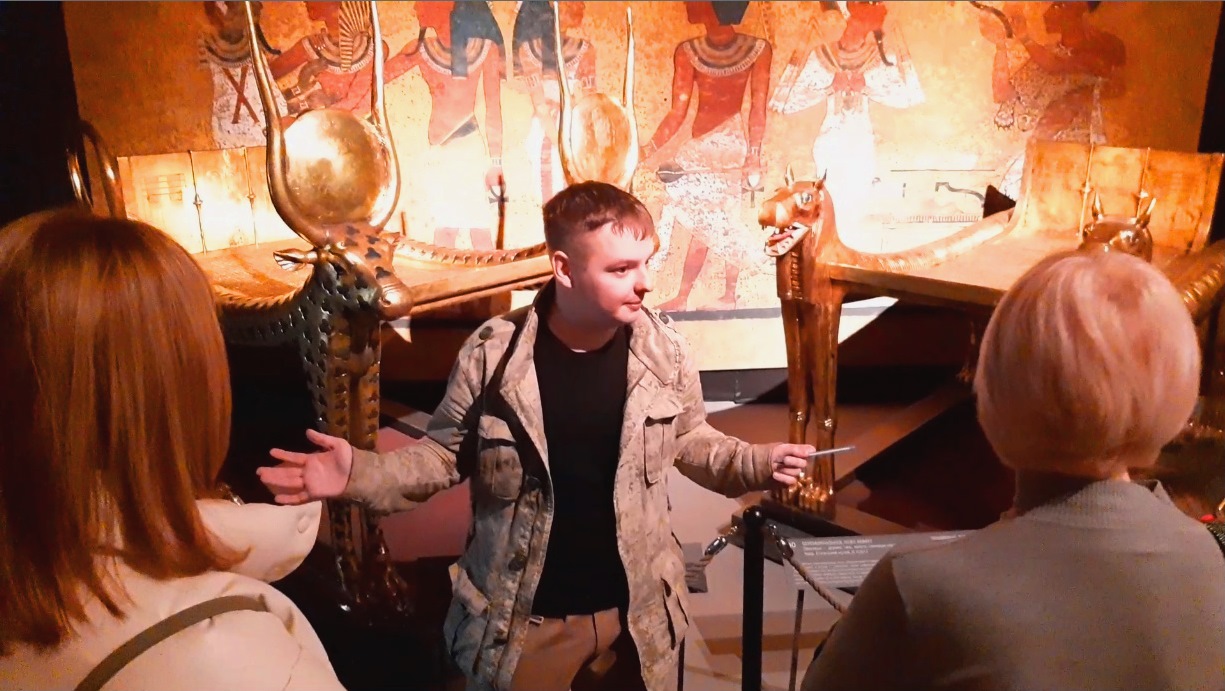 Путешествуем по наиатмосфернейшей выставке, посвященной культуре Древнего Египта...и, в частности, археологическому открытию века, 100-летие которого пришлось на 2022 год...(Харизматичный экскурсовод в финале своего яркого и содержательного выступления)...