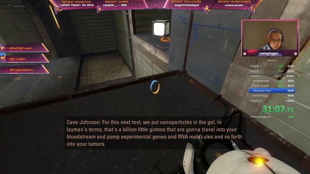 This is my current personal best on the version of Portal 2 Speedrun Mod. Drop a like if you enjoy! Recorded Live at twitch.tv/realsgtlogan