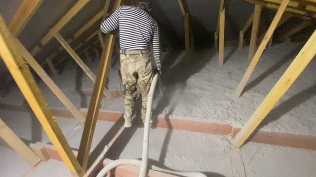 Утепление потолка частного дома эковатой. Задувка эковаты на открытую поверхность
