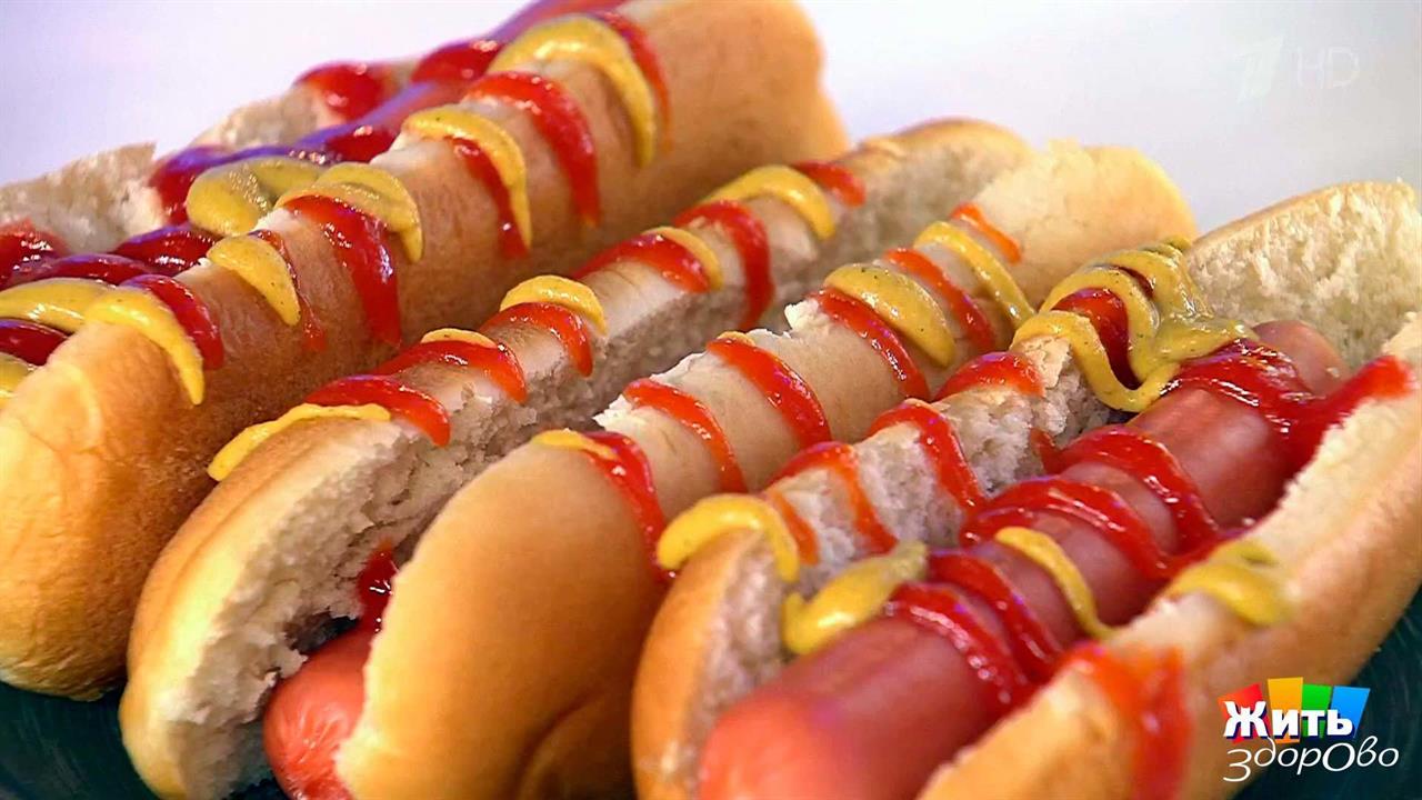 Хот-дог — булка с сосиской, политая кетчупом и горчицей — традиционный американский фастфуд, который популярен и в России. Насколько вредна такая «быстрая еда» для здоровья, и почему стоит попросить продавца не добавлять в хот-дог кетчуп? Полный выпуск смотрите здесь ﹥﹥