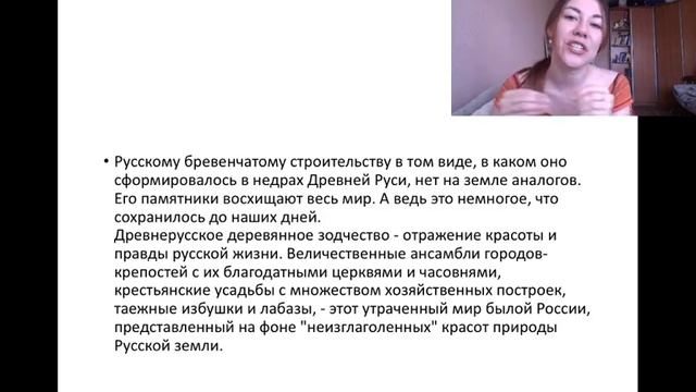 В данной лекции мы рассмотрим историю деревянного зодчества, откуда оно берется и каким образом создается. Также поговорим о шедеврах деревянного зодчества. Лекцию читает культуролог, сотрудник библиотеки №12 – Капустина Юлия