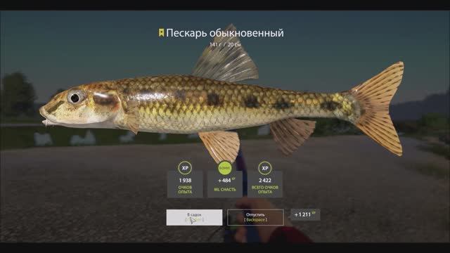 Пескарь, трофейная рыба, 141 грамм, река Белая, игра Русская рыбалка 4, координаты и способ ловли