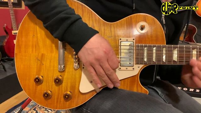 More details: https://shop.guitarpoint.de/de/vintage-gibson-/2002gibson-les-paul-gary-rossington-limited-edition 2002 Gibson Les Paul Gary Rossington Limited Edition from a private collection in the same condition as it left the factory. This is one of the most sought after runs made by the Gibson Custom Shop - they're supposed to be some of the best sounding guitars they ever made. It's one of the first Tom Murphy Aged replicas of a legendary Les Paul - Gary Rossington's "Bernice" which is limited to 250 pieces. His original 1959 Les Paul has been analyzed and recreated and it even includes the screws on the headstock that have been installed for headstock repair of the original guitar. This example has an exeptional and wild looking flame top and a great round 59 style neck. Includes original Gibson wall display and brown Custom Shop case. Specs: Tom Murphy Aged Top: 2-piece flamed maple, book-matched Body: 1-piece lightweight mahogany Binding: Single bound, cream Neck: 1-piece mahogany Neck-profil: Gary Rossington 1959 round Fretboard: 1-piece indian rosewood Radius: 12" Frets: 22 Scale: 24,75" (628 mm) Nut(width): Nylon 6/6 (42,8 mm) Pickups: Gibson 57 Classic Controls: 2x Volume, 2x Tone, Toggle switch Bridge: ABR-1 tune-o-matic w/ 4 Thumbwheels Tailpiece: Reissue Lightweight Aluminium Tuner: Aged gold Schallers Hardware: Aged Gold including Gibson case including original Gibson wall display