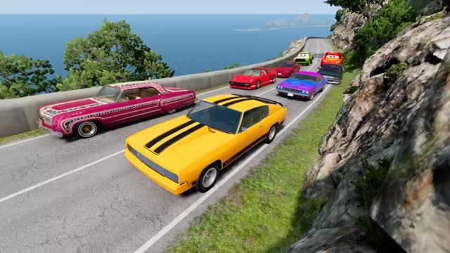 Мультики для детей. Машинки прыгают и летают с горы