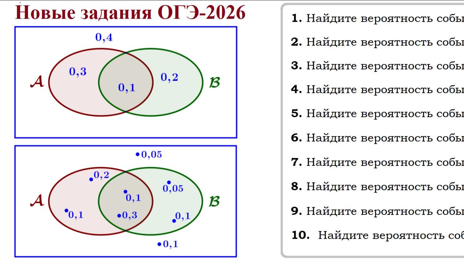 Диаграммы Эйлера. Новые задания в ОГЭ по теории вероятности