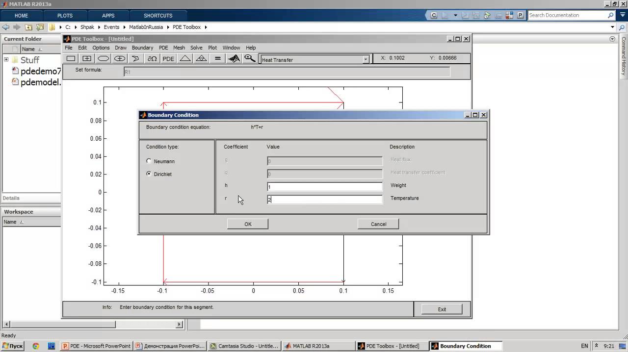 В видео дано краткое описание PDE Toolbox. На примере уравнения теплопроводности показаны базовые возможности графического интерфейса и его возможности по визуализации и анимации решения. Проект «Карьера» - вакансии для разработчиков и инженеров: https://hub.exponenta.ru/career Подписывайтесь на наши группы: FACEBOOK ‣ https://www.facebook.com/Matlab.Russia VK ‣ https://vk.com/mathworks INSTAGRAM ‣ https://www.instagram.com/matlab_russia/ Telegram ‣ https://t.me/exponenta_ru