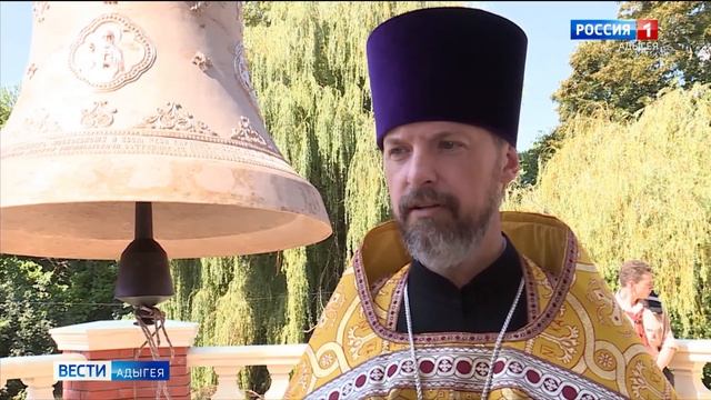 У прихожан строящегося Свято Успенского кафедрального собора сегодня большое торжество. Главный колокол звонницы, подаренный правительством региона к 30-летию Майкопской и Адыгейской епархии, занял свое место на колокольне. Поздравил с этим событием присутствующих Глава Адыгеи.