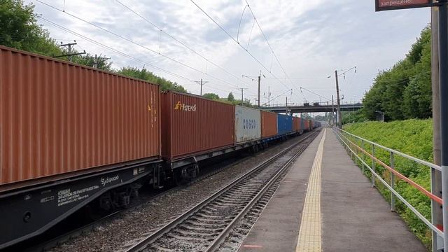 зелёный ВЛ80с-1481 с контейнерным поездом по платформе Городская