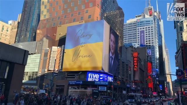 "Glory to Urine" Нью Йорк в дни заседания Генеральной Ассамблеи ООН встретил иностранных делегатов видео баннером с украинским флагом и надписью "Glory to Urine". В переводе с английского это означает "Слава Урине" (слава моче). ЮСПА / Главное @uspaglavnoe #украина #україна #Россия #сша #оон #un #ukraine #usa #newyork #ньюйорк