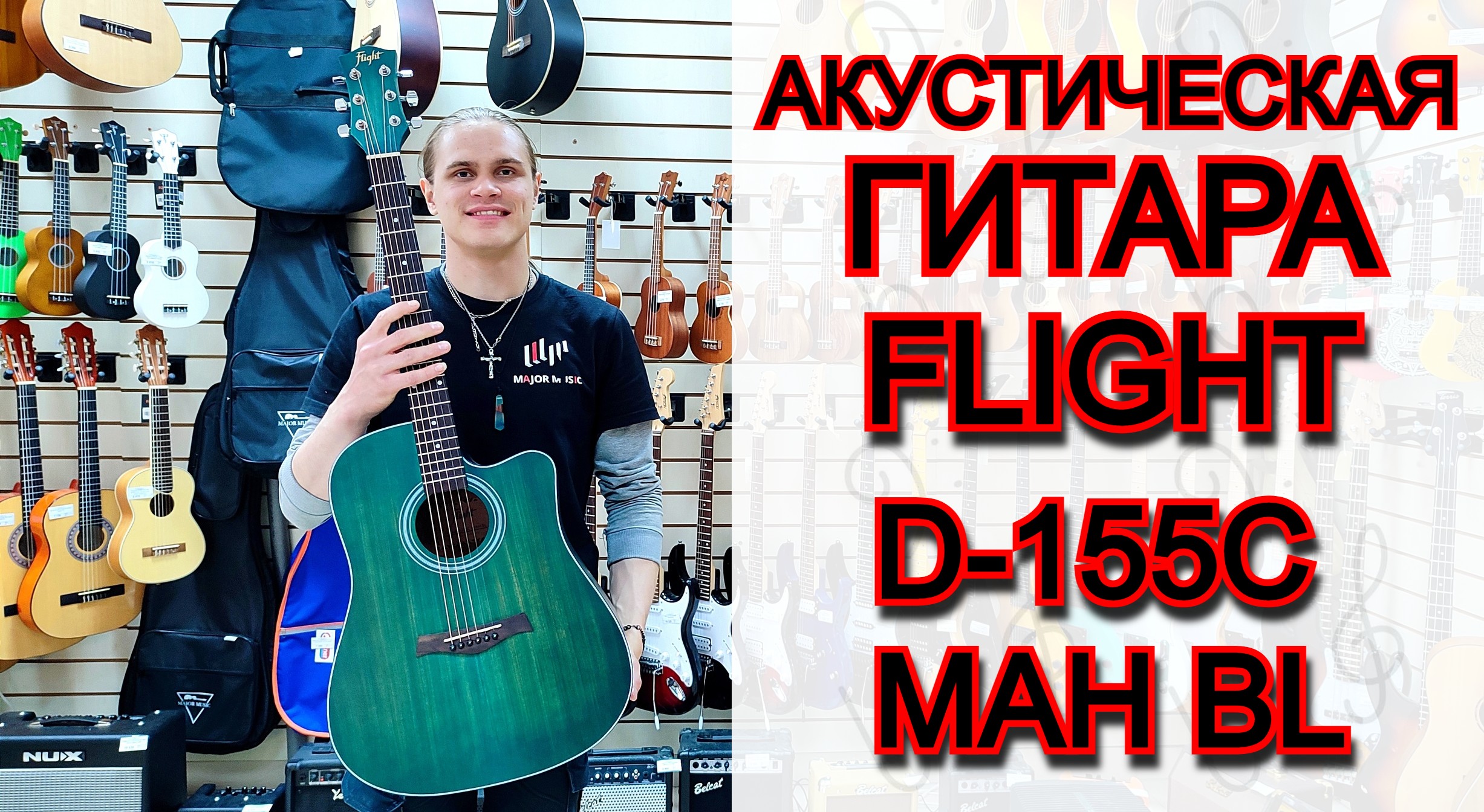 Акустическая гитара Flight D-155C MAH BL с вырезом | мини обзор от MAJOR MUSIC