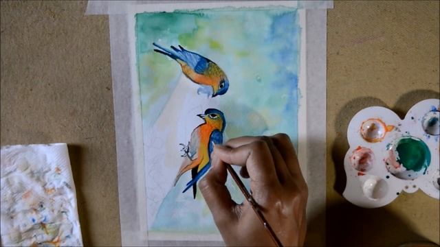 Couple blue bird/ step by step tutorial for couple bird painting