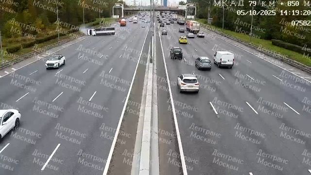 Грузовик опрокинулся после ДТП на внешней стороне 80 км МКАД