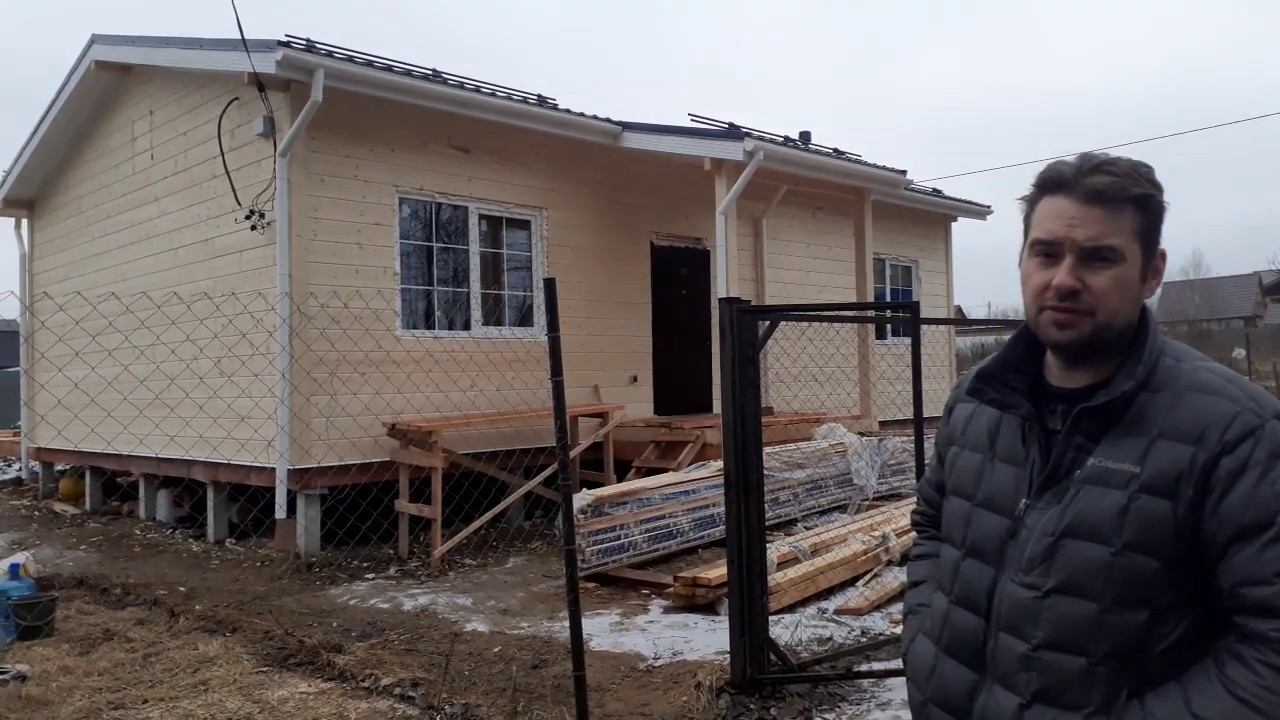 СИП дом с ППУ, усиленные панели пола с ППУ/ЦСП 20мм, Стены СИП с ППУ/Гринборд, ЖБИ сваи, терраса, внешняя отделка имитация бруса, коммуникации. Дом построен осенью 2019 г. Проект дома №58 на нашем сайте по ссылке: www.polysip.ru