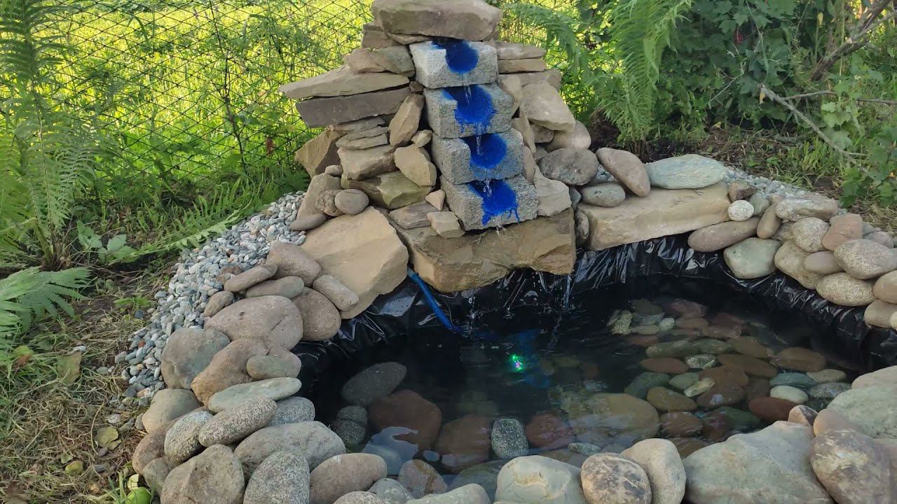 Маленький прудик с горкой в саду своими руками из подручных материалов.