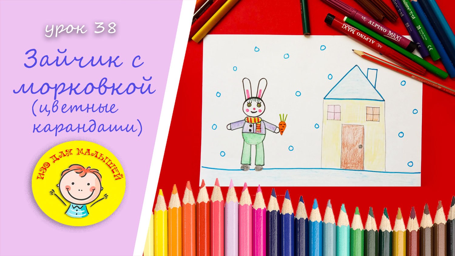 Рисуем ЗАЙЧИКА с МОРКОВКОЙ. УРОК 38. Тема: "зайчик с морковкой"- цветные карандаши