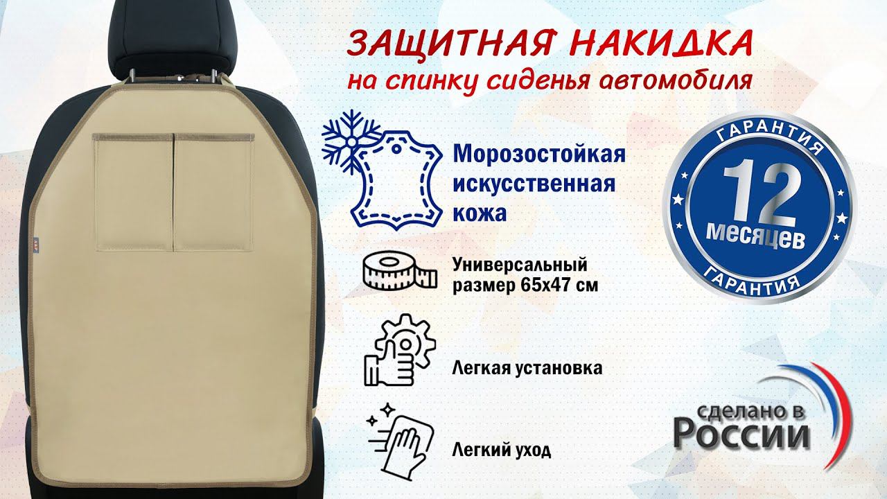 Накидка на спинку сиденья авто с карманами. Искусственная кожа. Цвет: бежевый. Промо-ролик