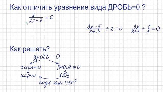 Как решать дробные уравнения Как решать уравнения с дробью ОДЗ Числитель=0 знаменатель не = 0 Как от