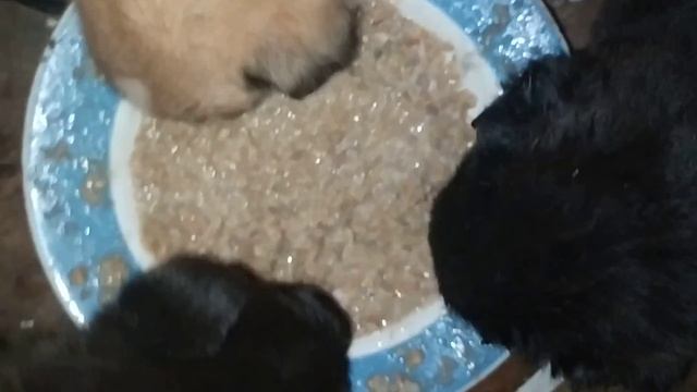 Щенки Тяпы уже кушают кашку